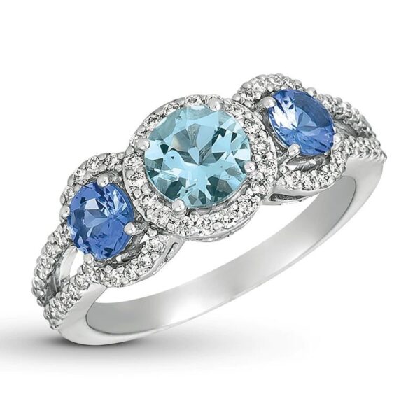 Diamond Anniversary Ring 2 ct tw Round & Baguette-cut 14K White Gold