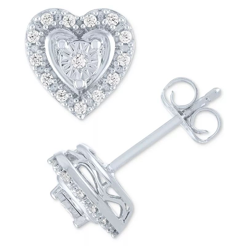 Diamond Palm Leaf Earrings 1/10 ct tw Sterling Silver & 10K Rose Gold